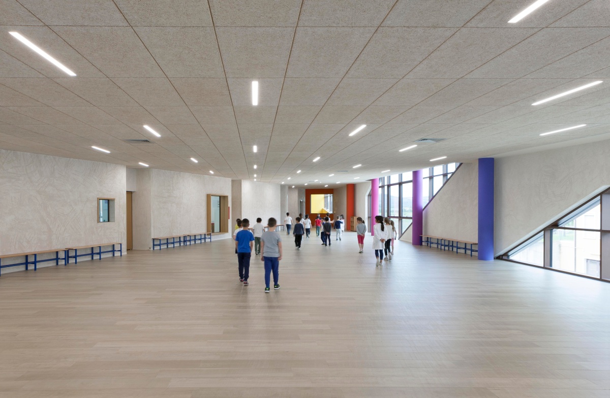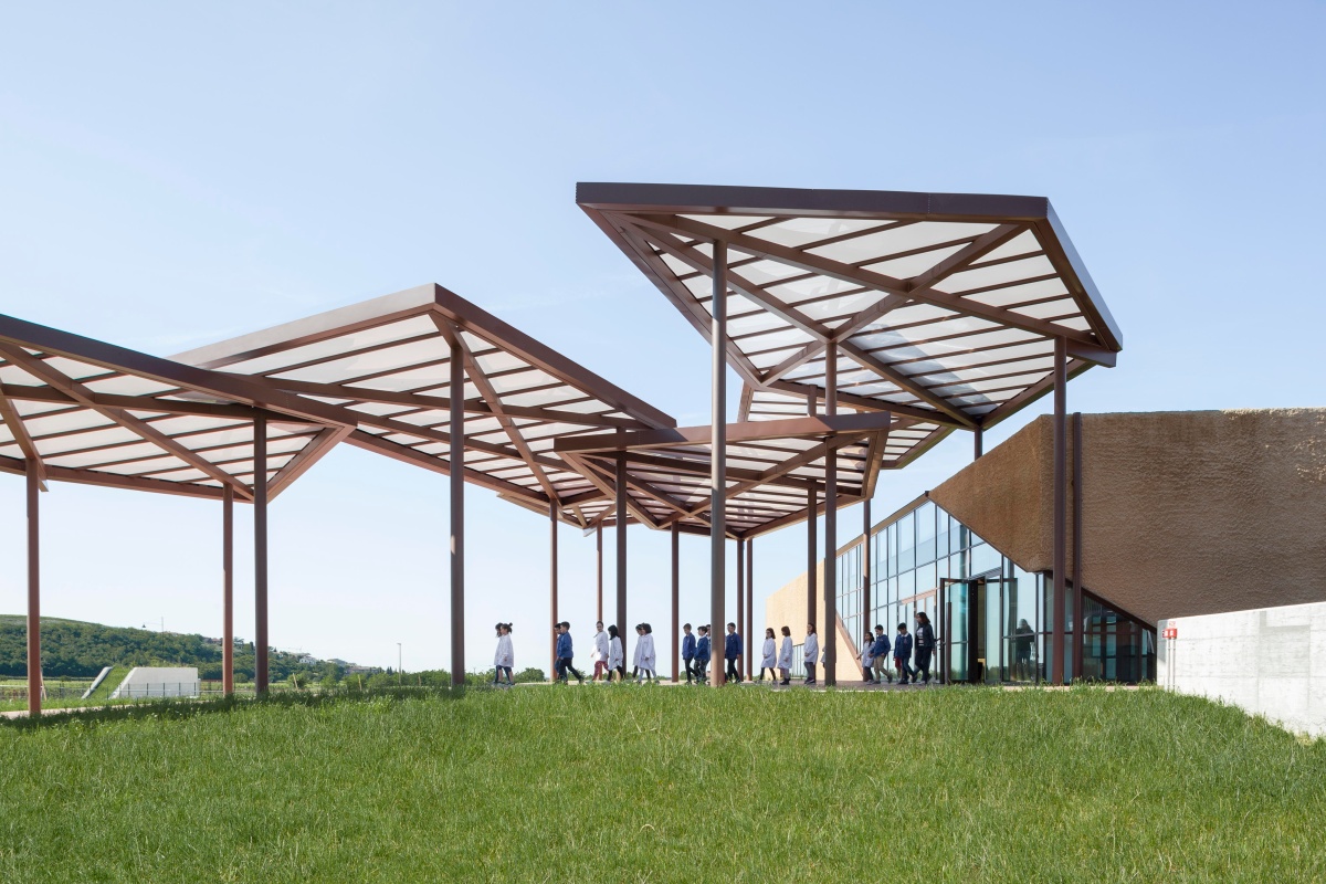 小学校のデザインを創造するに当たって最も重要なことは、敷地における強い農耕地的伝統と多数の丘という地形を尊重することであった。豊かな緑や丘の形態が、このプロジェクトの基本的なデザイン骨子となっている。そのひとつが、生徒たちが自由に遊べる大きな緑のルーフ・ガーデンである。