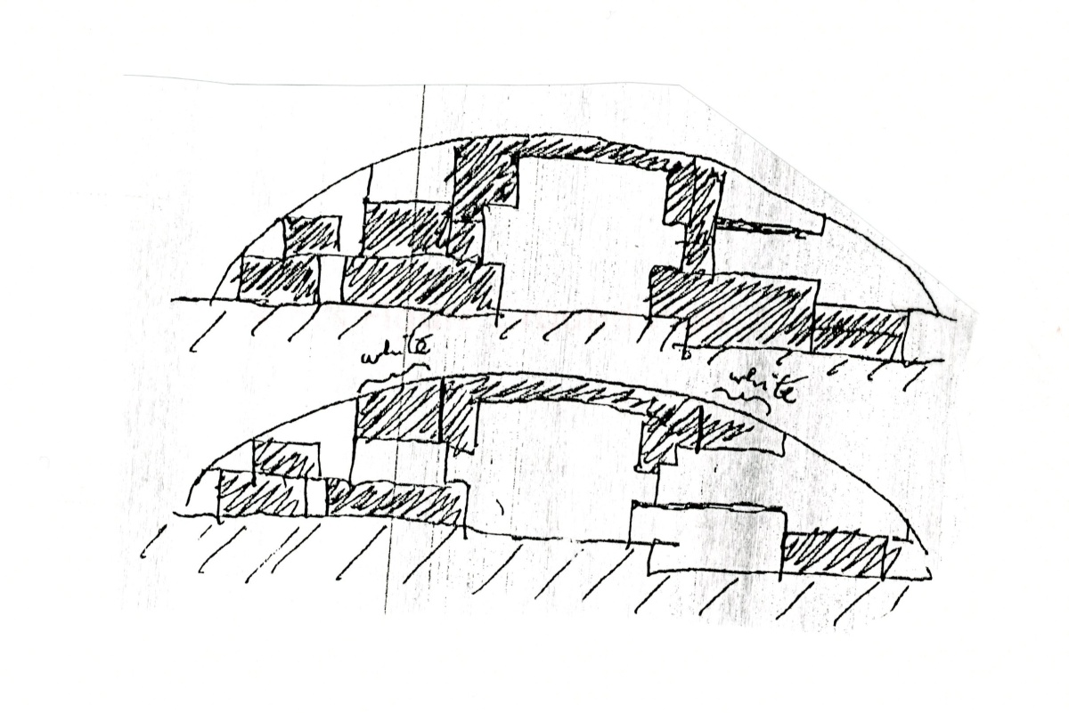 学校側から要求されたプログラムは、900席のコンサートホール、ブラック・ボックス・シアター、会議室数室、リハーサル&練習室、図書室、ラーニング・センター、レストラン、カフェ、学生ラウンジ、その他のアメニティで盛り沢山の内容だ。
