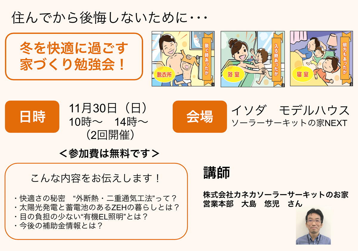 「冬を快適に過ごす家づくり」勉強会 予約制 参加費無料