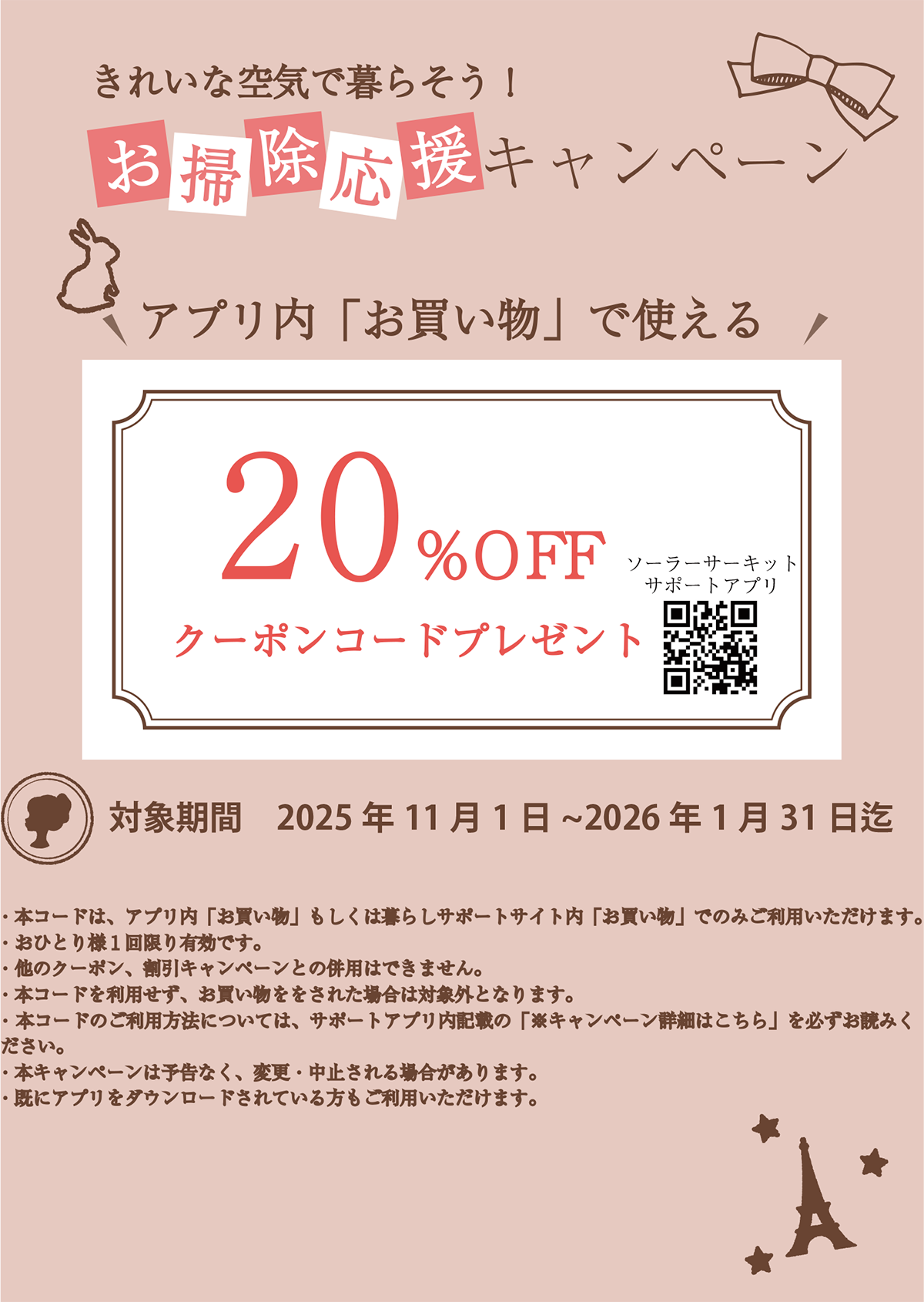 2025 年 11月 1 日〜2026 年1月 31 日迄ご利用いただける商品価格 20%OFF クーポンをご準備いたします。
